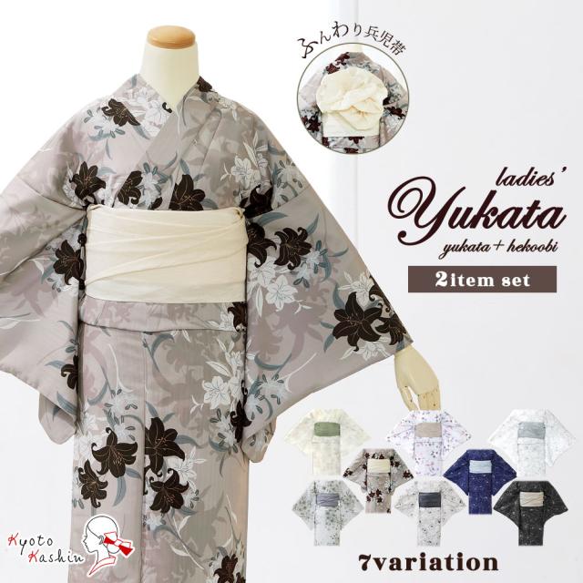 コーディネート済みの浴衣と帯の2点セット。
