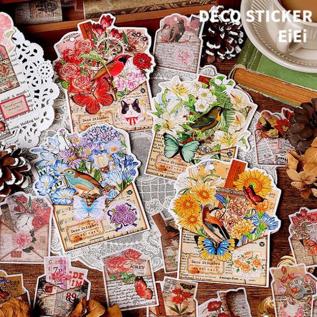 ラージュ シール セット マスキングテープ素材 マステシール 20枚20柄 コラージュ 素材 大きめ スクラップブッキング デコレーション 手帳 シール レトロ柄 ステッカー アンティーク調 小鳥 花柄 タグ 英字 蝶 手紙 ハガキ 封緘 封かん シール 手帳 日記 DIY