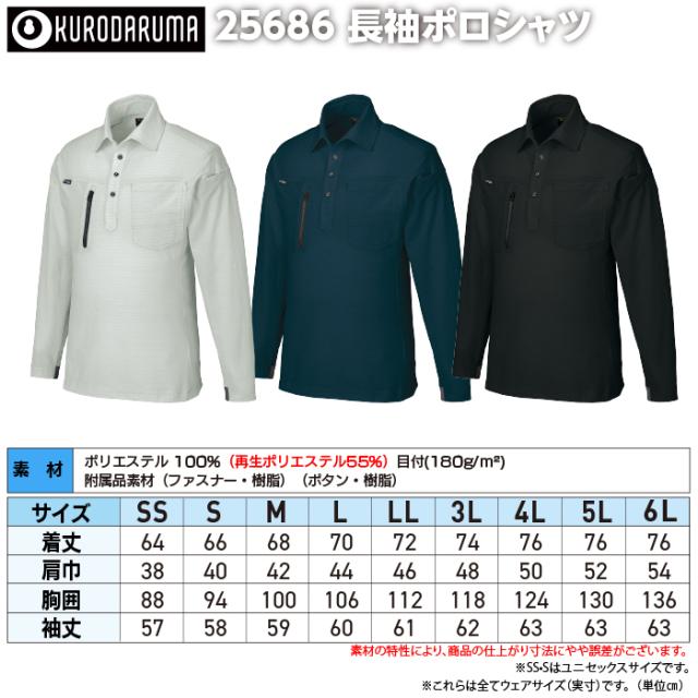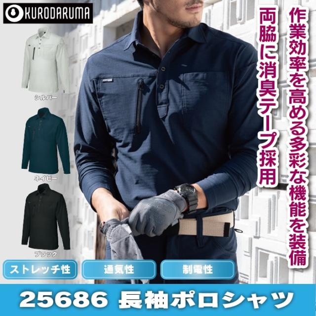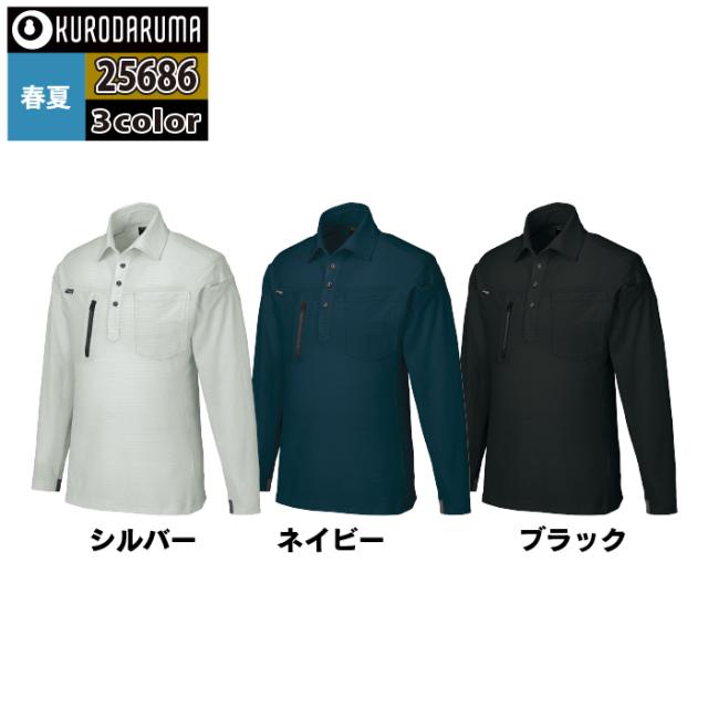 クロダルマ 作業服 インナー 25686 長袖ポロシャツ 6L 春夏用