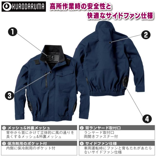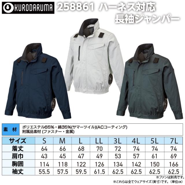 ファン付きウェア (服のみ) クロダルマ 作業服 258861 ハーネス対応長袖ジャンパー S-LL 春夏用