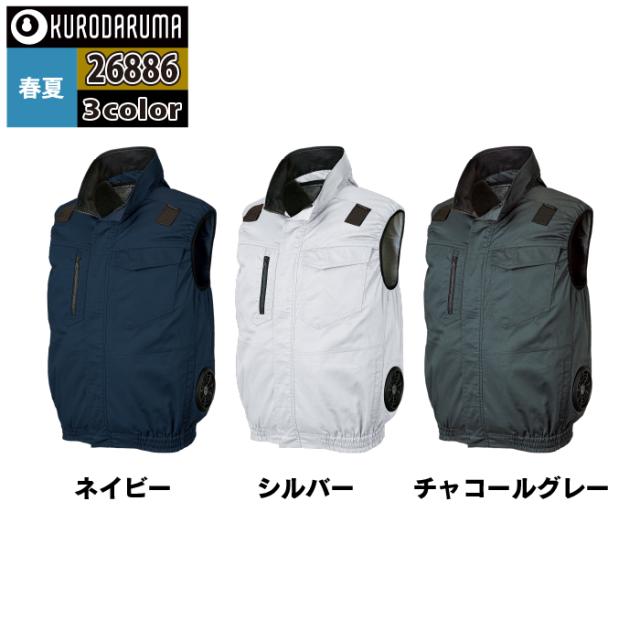 ファン付きウェア (服のみ) クロダルマ 作業服 26886 ハーネス対応ベスト 3L-5L 春夏用