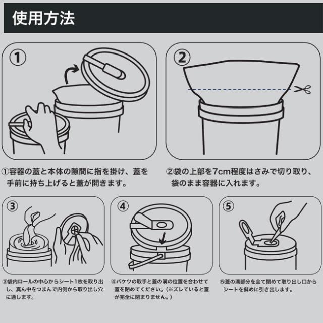 4.バケツの取っ手と蓋の溝の位置に合わせて蓋を閉めてください。(ズレていると蓋が完全に閉まりません。)