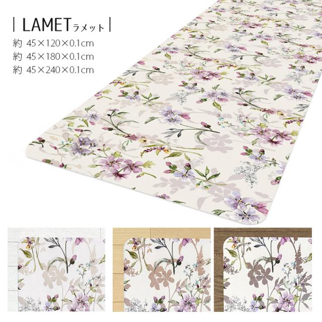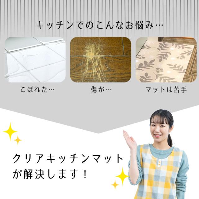除菌ができる キッチンマット 45×240cm / 拭ける 洗える 撥水 ロング クリア 透ける おしゃれ 北欧 薄型 ずれない 滑り止め付き 床暖房対応 防水 防炎 塩化ビニール