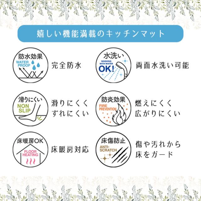 防水仕様、床暖房OK、床傷防止、難燃素材、滑りにくい、滑り止め加工済、ずれにくい設計