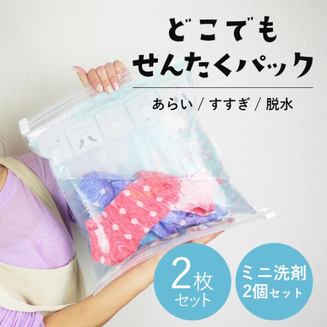 どこでも洗濯パック 2枚組 洗濯グッズ ランドリー ミニ洗剤2個付 日本製 / 旅行 トラベル 防災グッズ 災害時 避難時 介護 便利用品