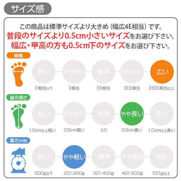 ワイズ(横幅):ゆったり幅広4E(EEEE)