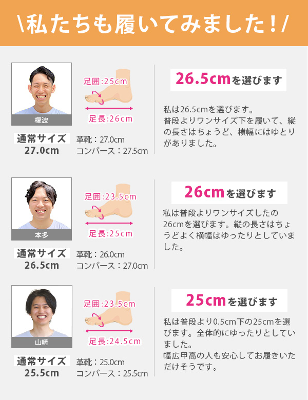 取り扱いサイズ:24.5cm 25cm 25.5cm 26cm 26.5cm 27cm