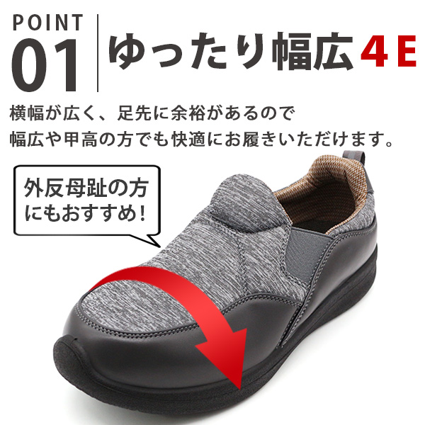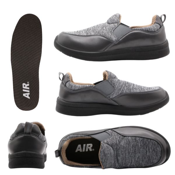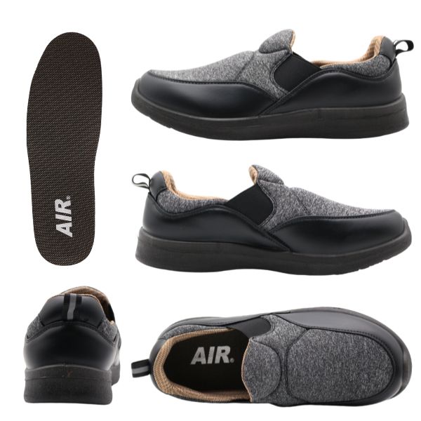 スリッポン メンズ スニーカー 靴 黒 ブラック 灰色 グレー 甲高 幅広 4E 外反母趾 履きやすい 軽量 軽い 歩きやすい 疲れない クッション サイドゴア 介護シューズ 入院 父の日 おしゃれ かっこいい 仕事 通勤 普段 エアー AIR 3625