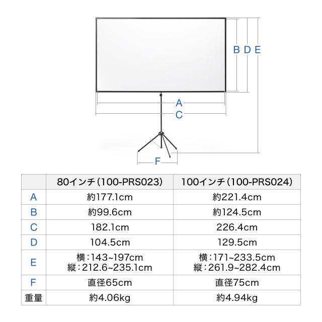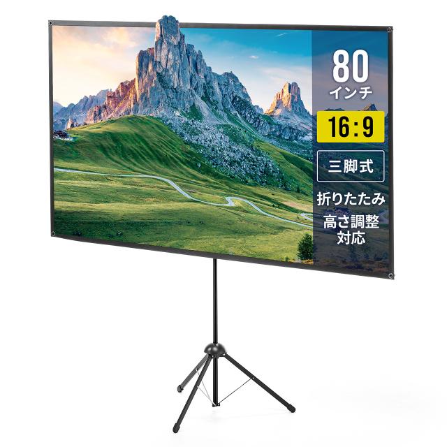 プロジェクタースクリーン 360度回転 三脚 80インチ 4K対応 16:9 持ち運びやすい[100-PRS023]