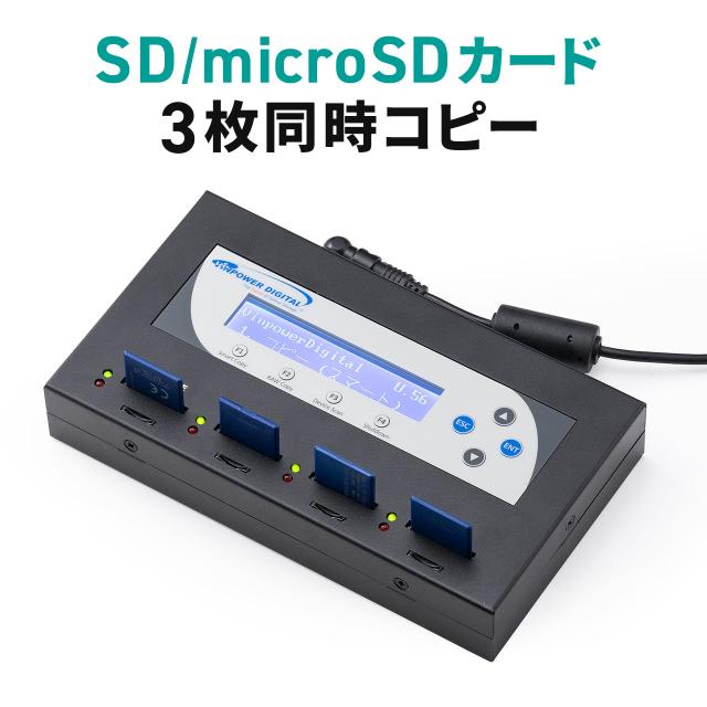 デュプリケーター SDカード 大量コピー 3枚同時 クローン 複製 消去 削除 パソコン不要 日本語 microSD 法人 貸出機サービス 読込33MB/S 書込31MB/S[400-SDDU2]