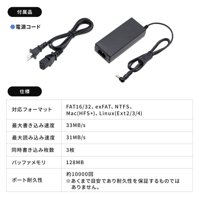 ⇒ご購入の前にご確認下さい一度に最大3枚のSDカードにコピーデータを作成することができるデュプリケーター。2種類のコピー方法を選ぶことができ、状況確認しながら使用できる。全消去、フォーマットも可能。【WEB限定商品】