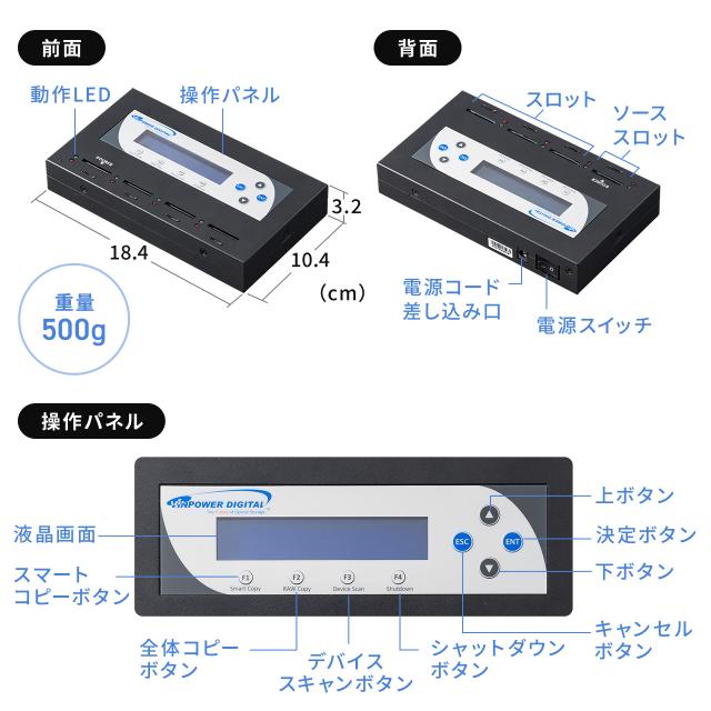 ●パソコンなしでデータを大量コピーできるSD/microSDカードデュプリケーターです。●最大3つまで同時にコピーすることができます。