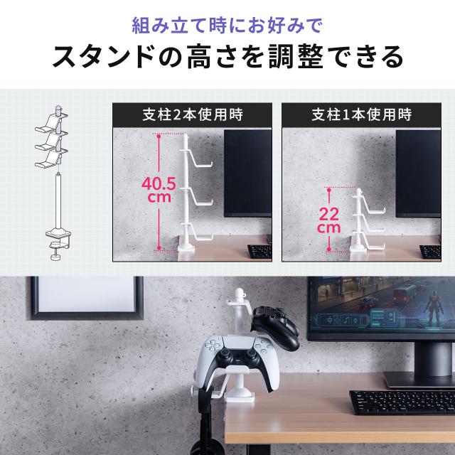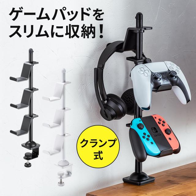 コントローラースタンド クランプ固定式 転倒防止 ゲームパッド ヘッドホン スタンド PS5 PS4 switch 対応 充電用スリット 卓上 デスク下 収納ラック 収納スタンド ブラック ホワイト[200-GAP012]