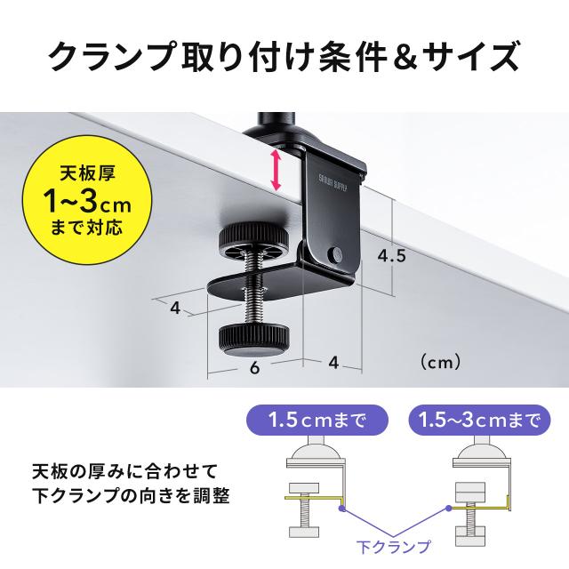 ■クランプ取り付けサイズ:天板厚1〜3cm