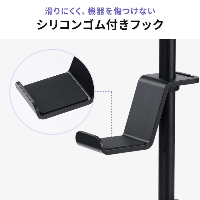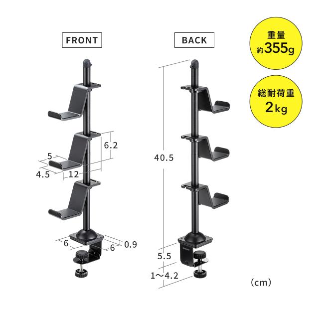 ■対応機種:各フック約W4.5cm×D5cmの設置範囲に設置できて、総耐荷重以内の重量の機器■設置条件:天板の厚みが1〜3cmで、挟み込むための6cmの奥行きのあるデスク等
