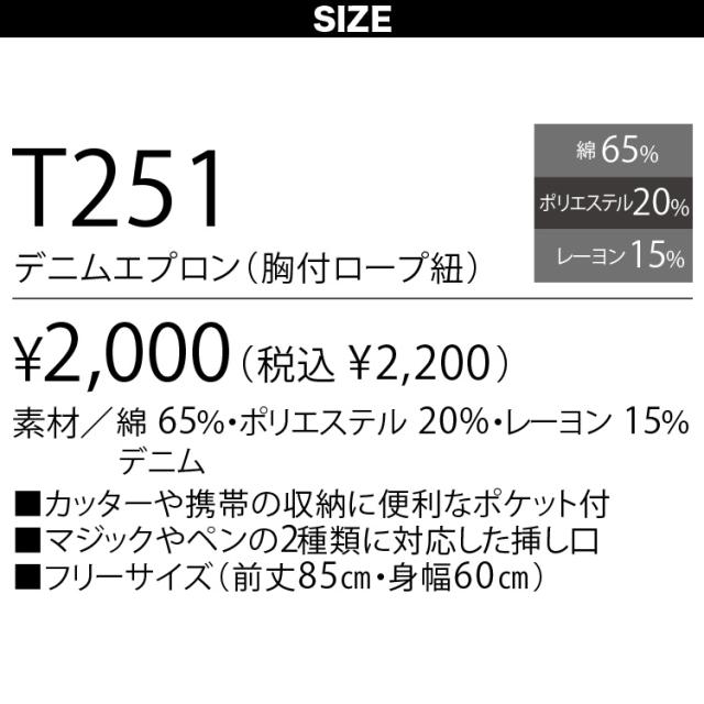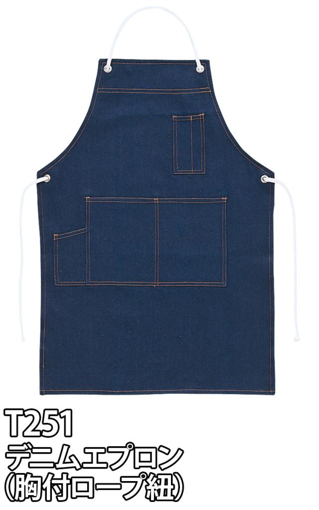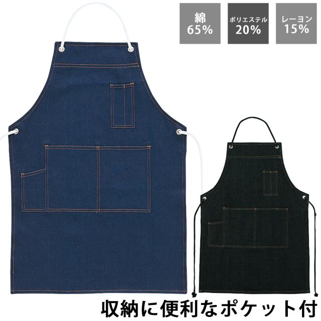 ヤマタカ デニムエプロン(胸付ロープ紐)T251 ネイビー/ブラック フリーサイズ カジュアル イベント 作業服 作業着 通年 メンズ レディス DON YAMATAKA