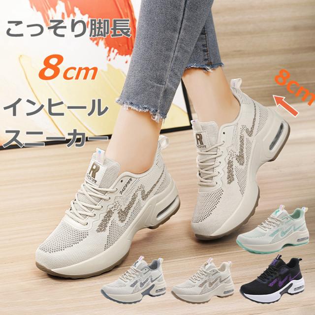 厚底スニーカー レディース インヒールスニーカー ウォーキングシューズ 美脚 シークレットシューズ 脚長効果 レースアップ 8cm厚底