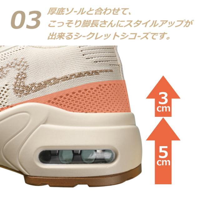あなたの日常を快適にしてくれる一足です。美しい足元を歩む優雅な姿は、まるで舞台に立つ姫さまのよう。これからの季節、インヒールスニーカーで自分を輝かせてみませんか? ※サイズによっては足入れがきつい場合がございますので、ご購入の際はサイズチャートを必ずご確認ください。