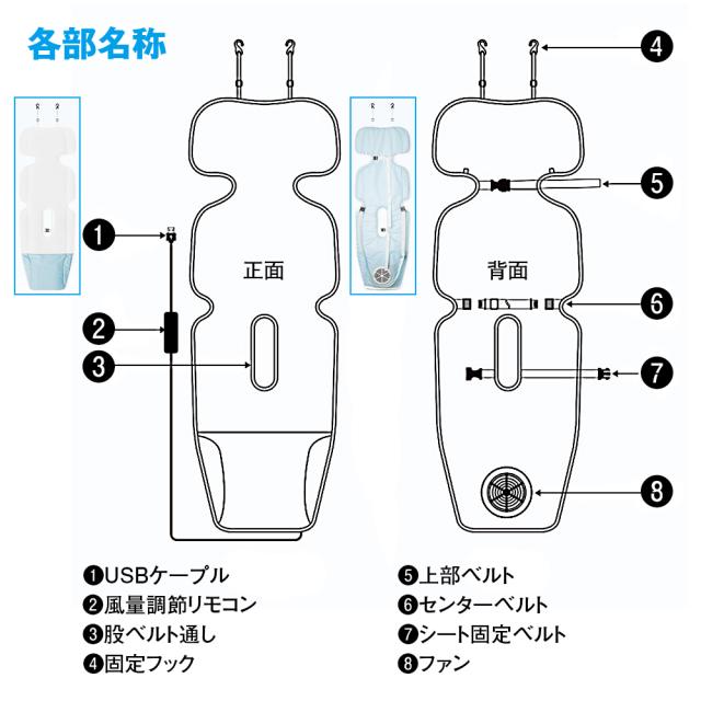 風を全身に届けてサラサラに!4層構造のシートで心地よい肌触り。シートのメッシュ生地から風を出して、背中ムレを防ぎ、熱のこもりやすいチャイルドシートやベビーカーを快適空間に早変わり!
