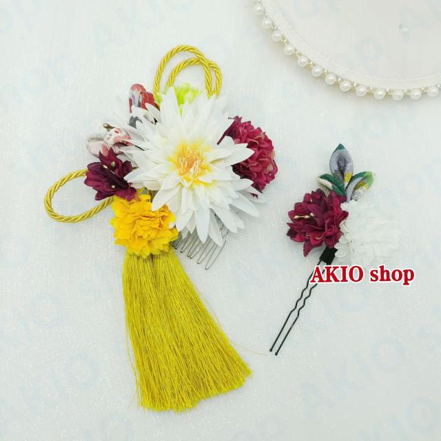 枯れる心配がない鮮やかな造花は飾るだけで和風ヘアスタイルが手軽に仕上がり、和服の髪飾り、浴衣のヘアーアクセサリー、成人式や結婚式の髪飾りに最適です。