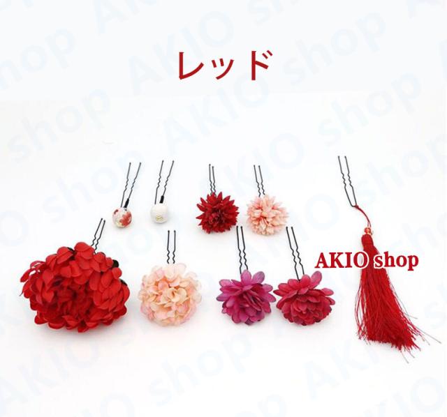 髪飾り 成人式 8点セット つまみ細工 花 七五三 袴 着物 髪 飾り 和装 卒業式 浴衣 結婚式 髪 飾り 髪留め コーム ヘアアクセサリー 3カラー