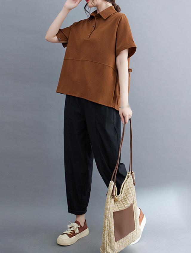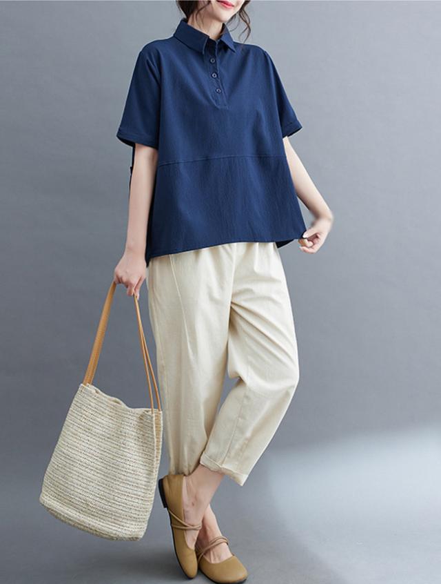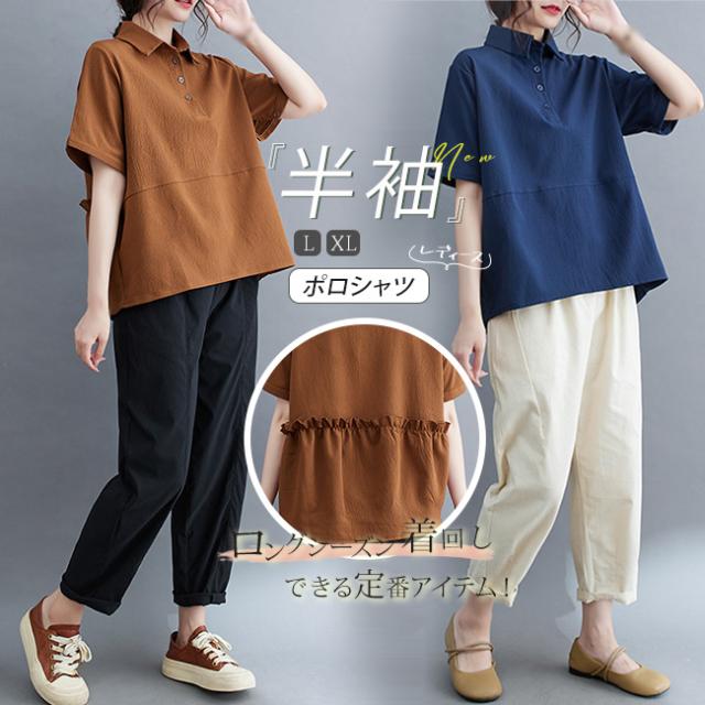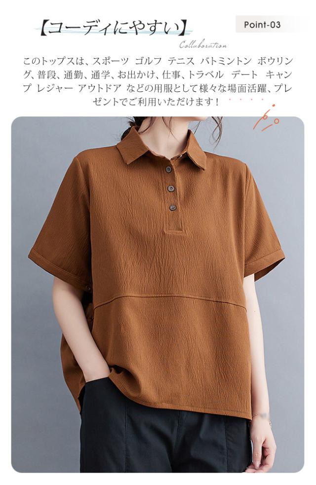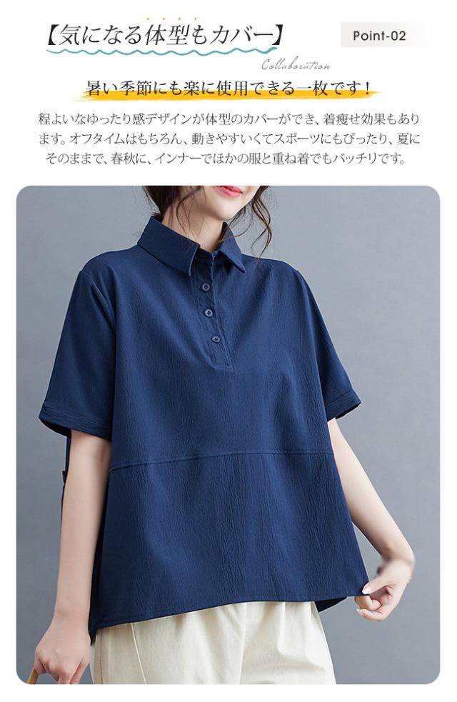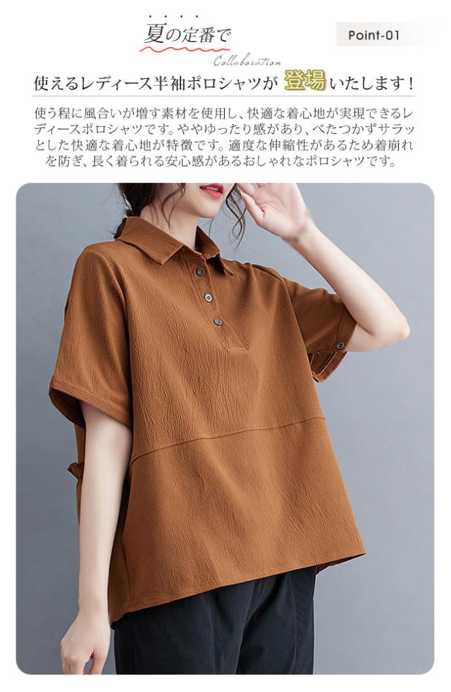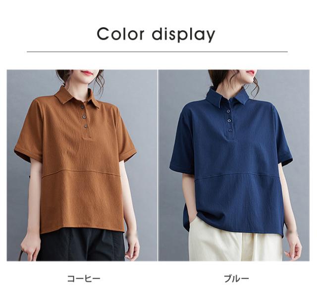 2025 夏新作 ポロシャツ レディース 半袖 tシャツ 襟付き 無地 夏 無地 薄手 綿 おしゃれ 大きいサイズ ゆったり 体型カバー 普段着 通勤 春夏