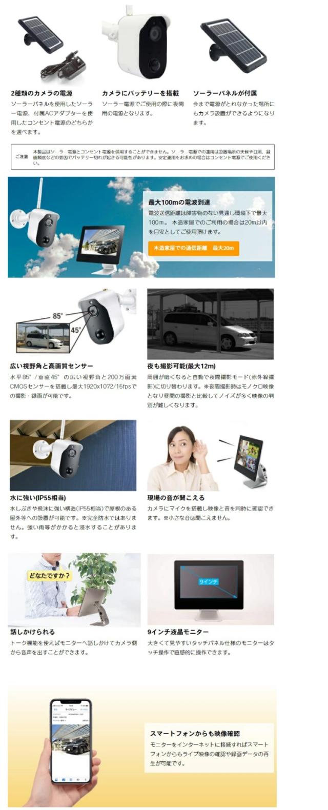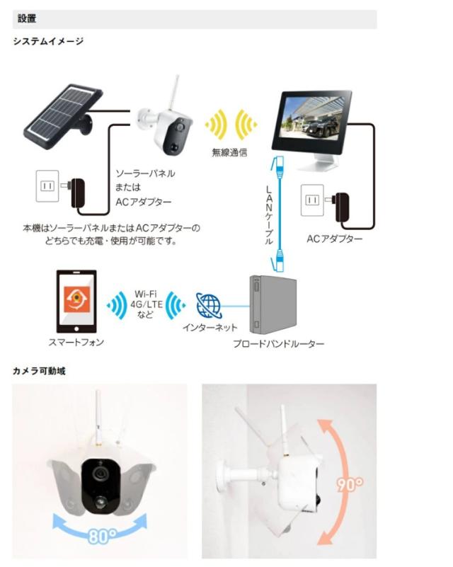 ソーラー電源で使える無線カメラセット。