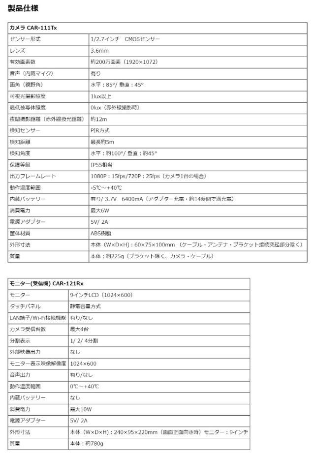 カメラ「CAR-111Tx」