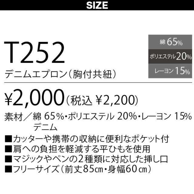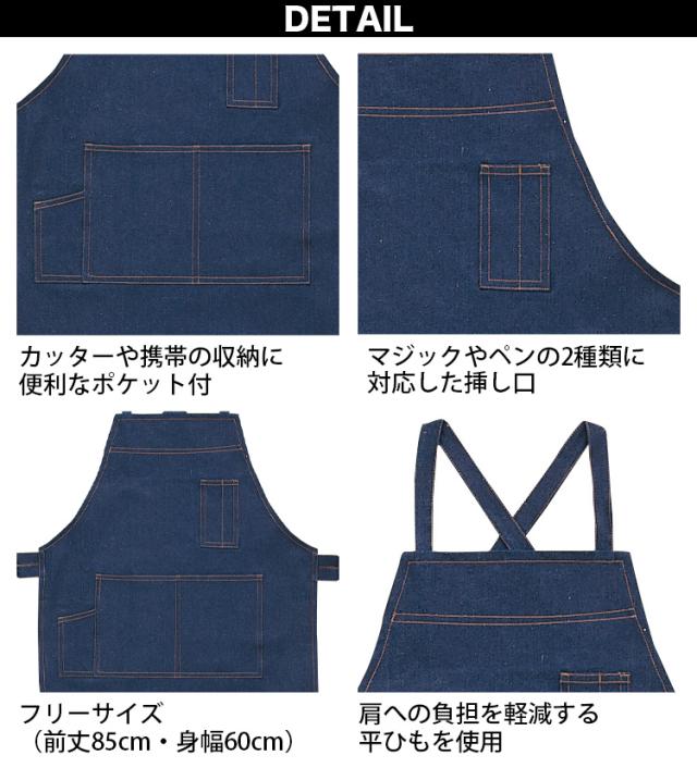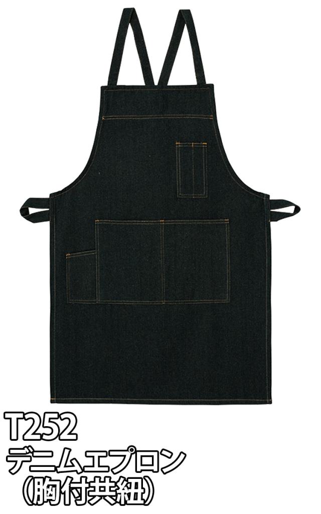 ヤマタカ デニムエプロン(胸付共紐)T252 平ひも ネイビー/ブラック フリーサイズ カジュアル イベント 作業服 作業着 通年 メンズ レディス DON YAMATAKA