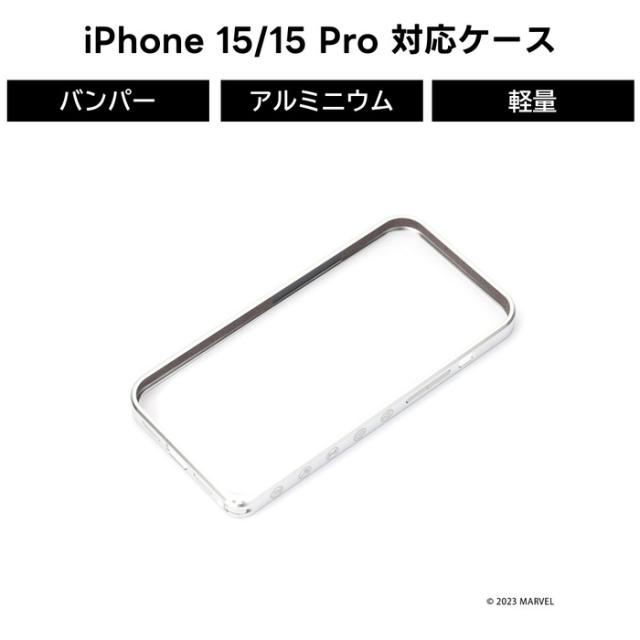 「MARVEL」デザインのiPhone本体の美しさを最大限に活かすスタイリッシュなiPhone 15/15 Pro用 アルミニウムバンパーです。