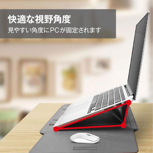 【スタンド機能】ケースを折りたたむとスタンドに変身!角度が付き、タイピングも楽々