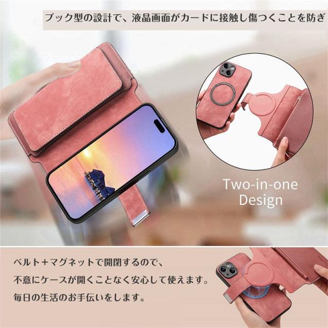 マグネット内蔵の財布型カバー付き。マグセーフに対応できる手帳型スマホケースです。