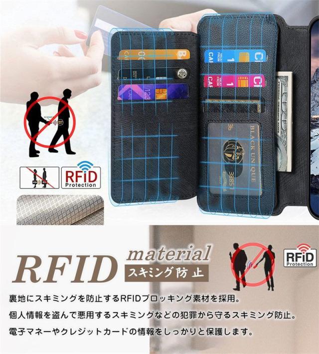 マグネット式財布型カバーを取り外せば、片手で持てる使いやすいサイズで、持ち運びに便利♪ ? RFID素材を使用、個人情報を盗んで悪用するスキミングなどの犯罪から守るスキミング防止。