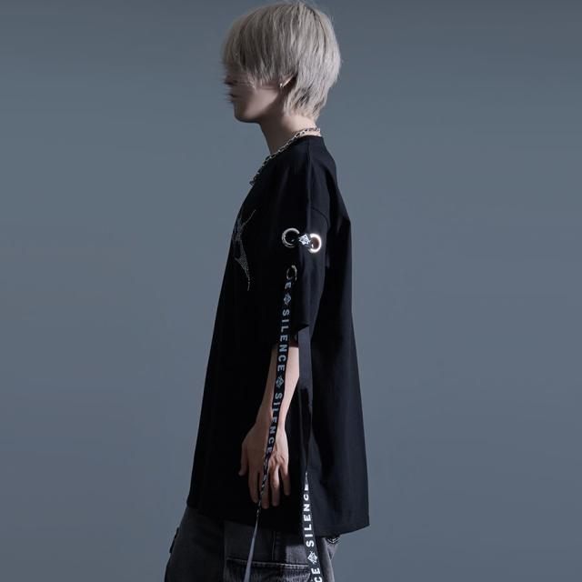 SILVER BULLET(シルバーバレット)にSB Select【シルバーバレットセレクト】レースアップラインストーン半袖Tシャツが入荷しました。袖に垂れるようにレースアップ状にベルトデザインを配置したインパクトあるデザインです。