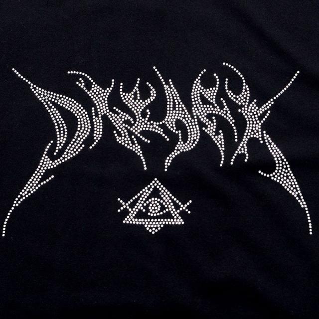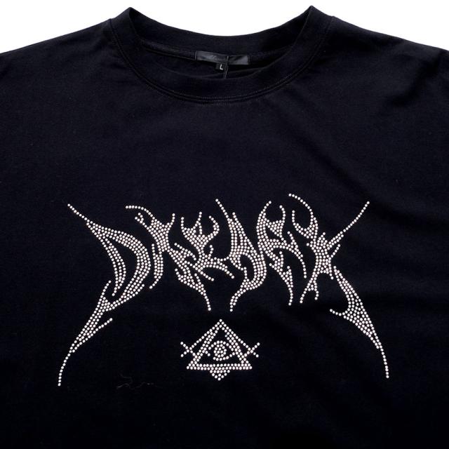 フロントにはダークなトライバルロゴをラインストーンで仕上げてY2Kとパンク要素をうまくMIXしたデザインです。
