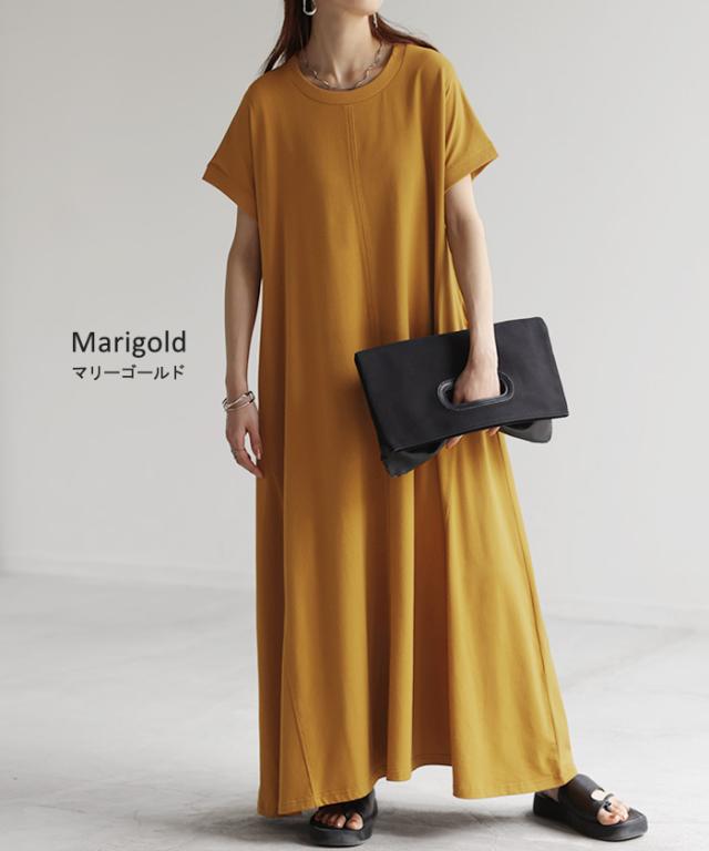 【960円OFF】 ワンピース Tシャツワンピース レディース ロングワンピース 一部4月中旬入荷 ロング 綿 混 フレンチスリーブ 二の腕カバー マキシ 半袖 センターライン 切り替えデザイン Uネック 着痩せ Aライン 大きいサイズ 体型カバー オレンジ 黒 春 夏 HUG.U 秋新作