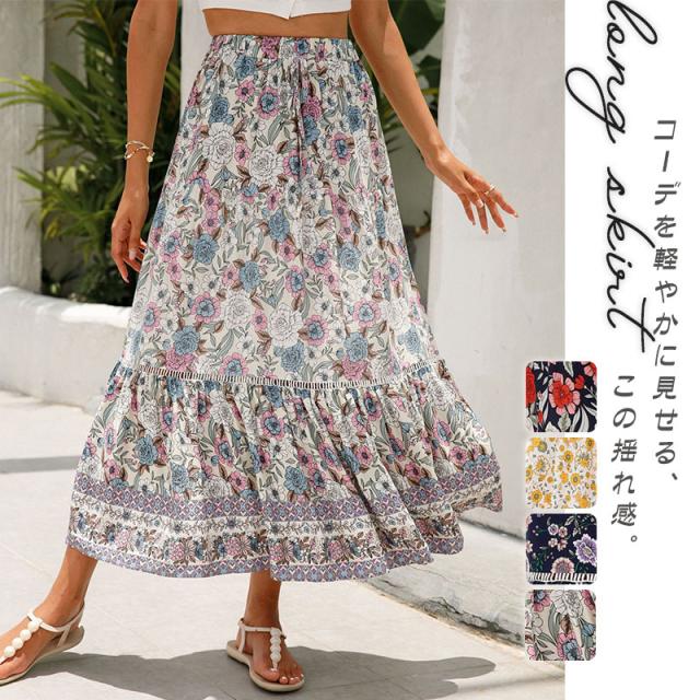 春新作 チュールスカート 総柄スカート シフォンスカート ロング ボリューム チュール 春 大人 冬 フレアスカート マキシ 楽ちん オールシーズン