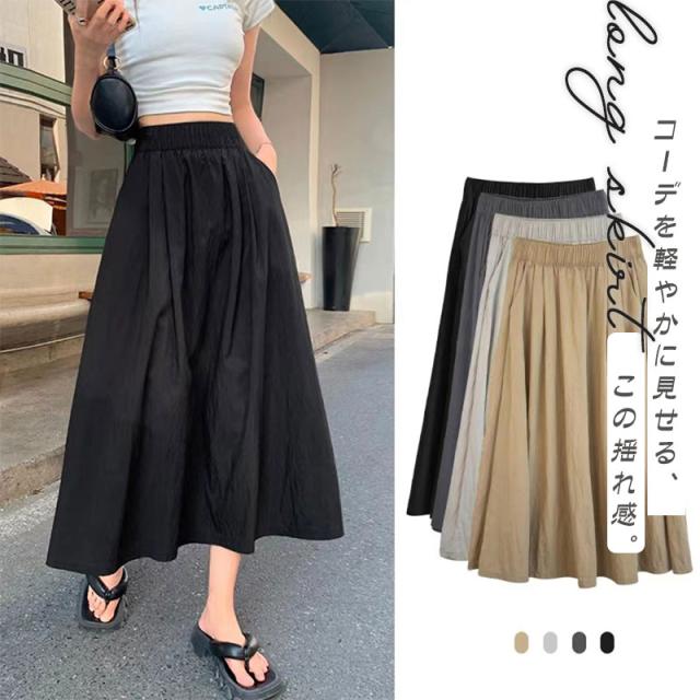 人気 ロングスカート レディース マキシ スカート ふんわり フレアロング丈スカート ボリューム 無地 ボトムス 大きいサイズ 体型カバー