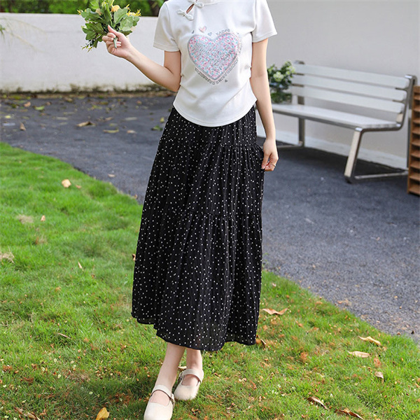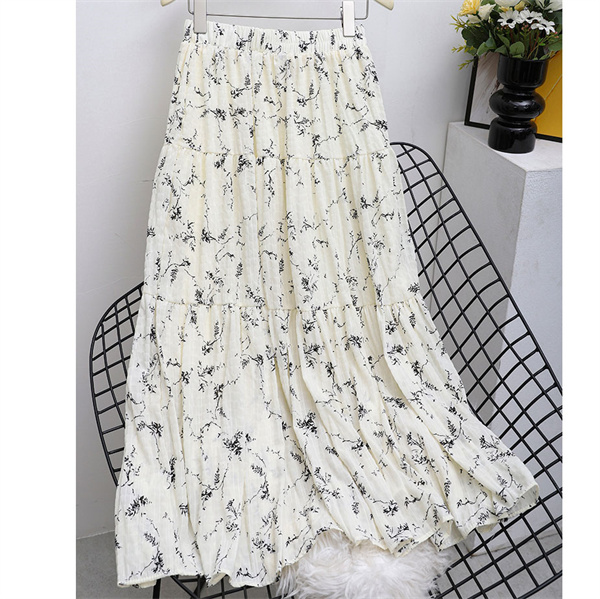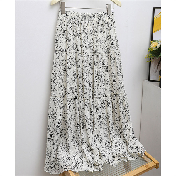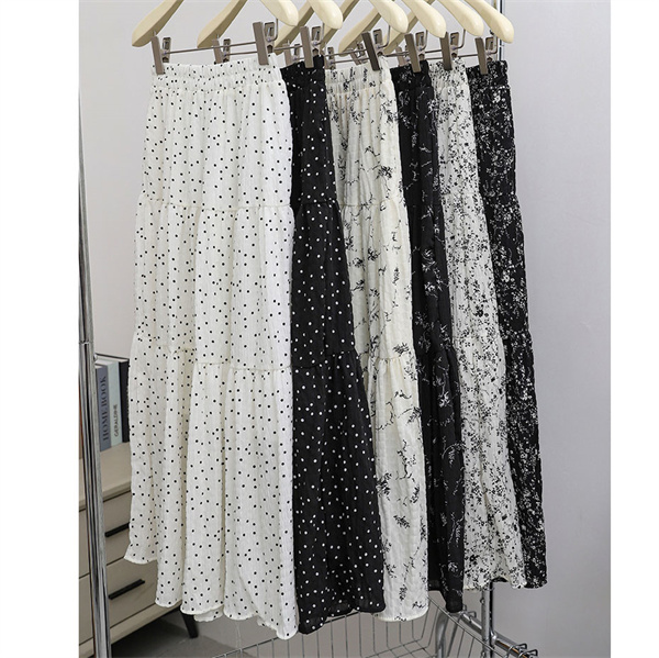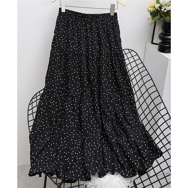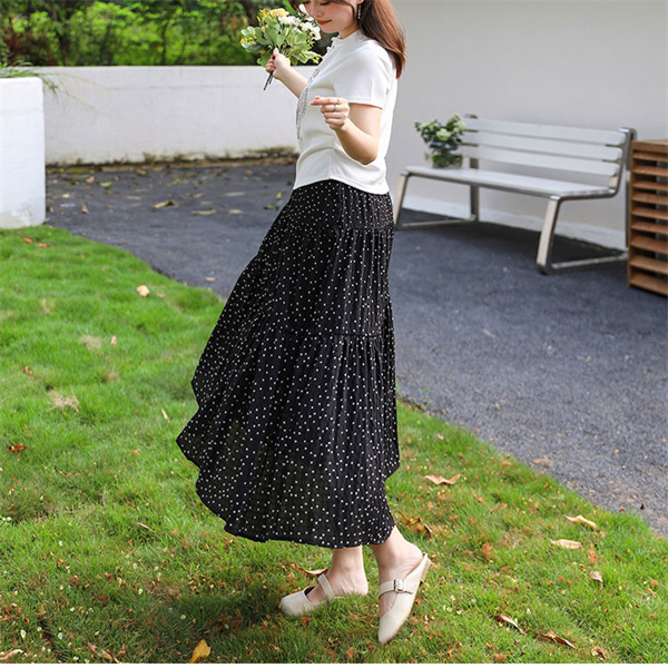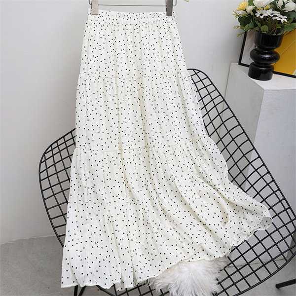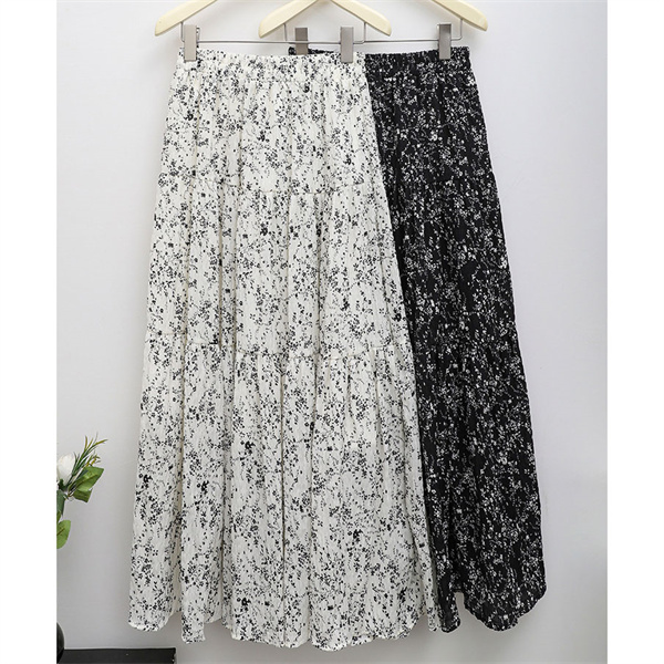 ◎女性らしいシルエットで人気のロングフレアスカートに、落ち着いた配色でダルメシアン柄をあしらい、印象的な一枚へ。
