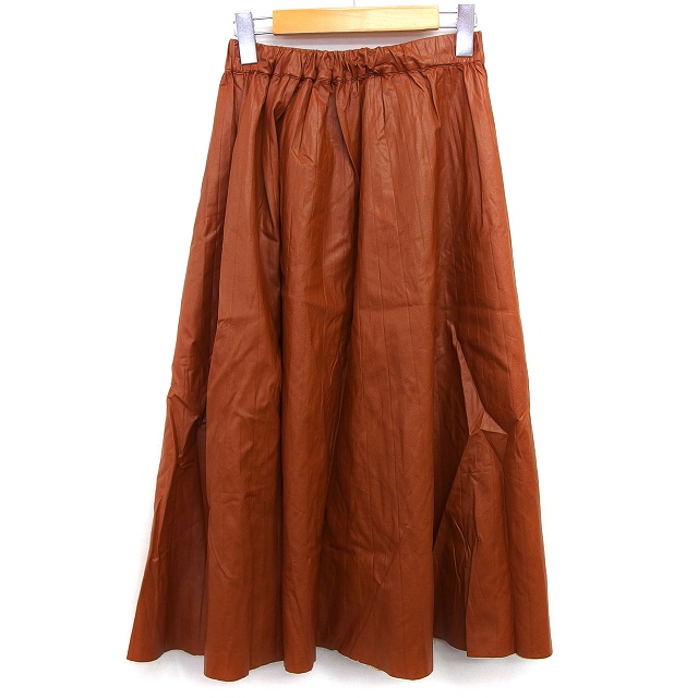 【中古】ザラ ZARA フレア スカート ロング ミモレ丈 フェイクレザー 無地 シンプル ギャザー XS ブラウン 茶 /HT5