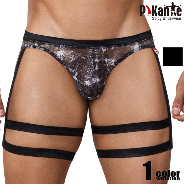 メンズビキニ Pikante/ピカンテ BESTIAL BRIEF プリントメッシュ ガーターベルト付き メンズビキニ ビキニブリーフ 男性下着 メンズ パンツ セクシー 透け シースルー