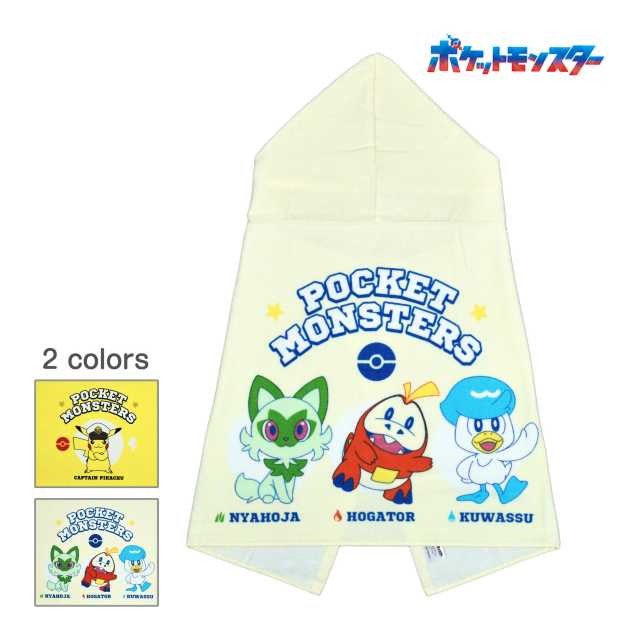 人気の ニャオハ ホゲータ クワッス プリント入り。スナップボタン付きでズレにくく、使いやすい コンパクトサイズ。フード付きタオル なので プール お風呂上り はもちろん レジャーでの日焼け対策などサッと羽織れマルチに活躍します。吸水性のあるコットン100%のタオル地。フード取り外し不可。前スナップ1つ。