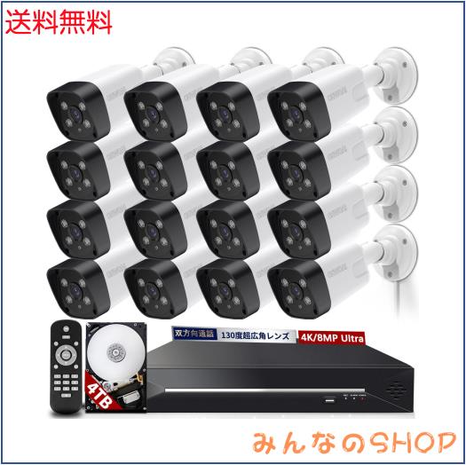 【800万画素・双方向通話・130°超広角】 防犯カメラ poe POE防犯カメラセット 16台 屋外 監視カメラ セット 監視防犯カメラ POE給電 有