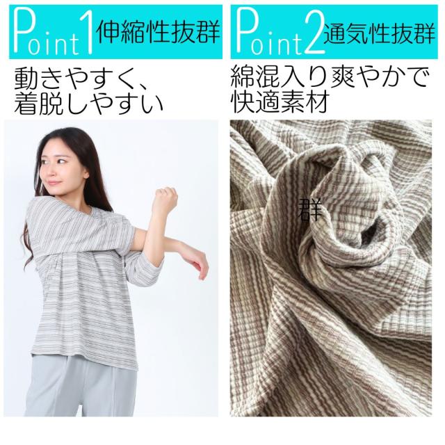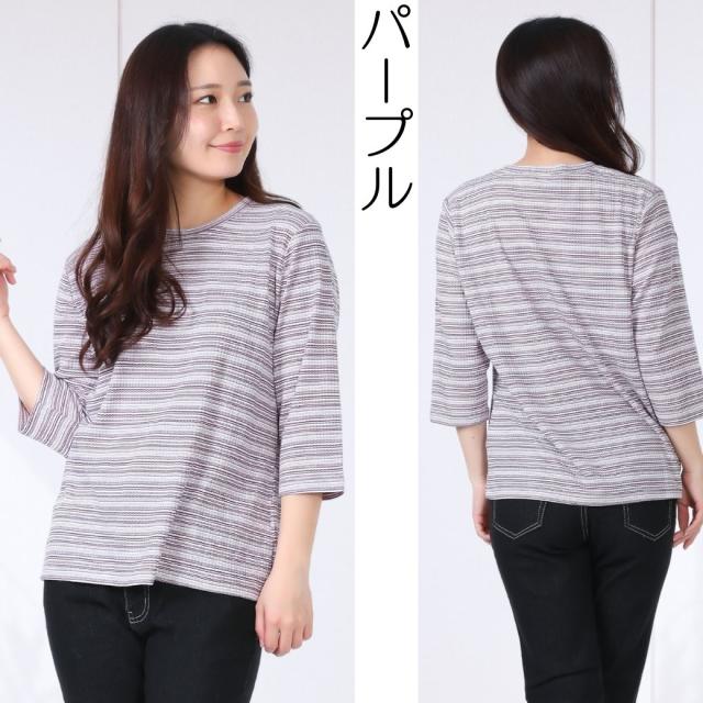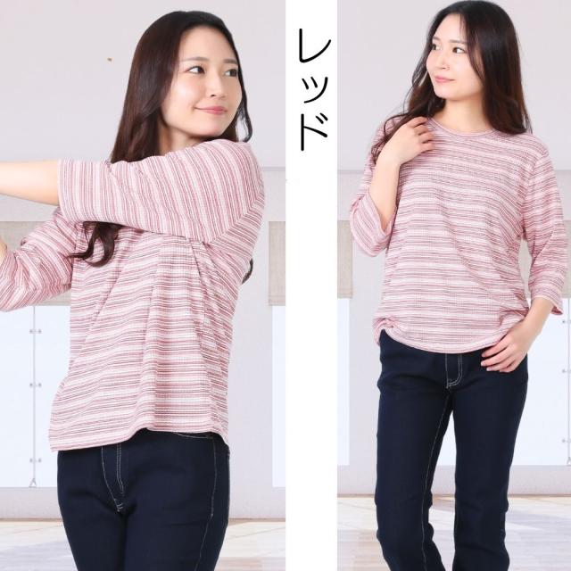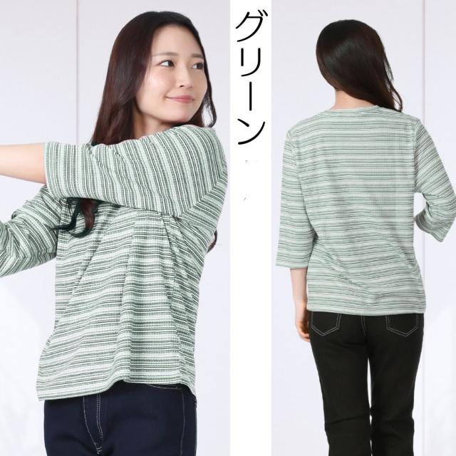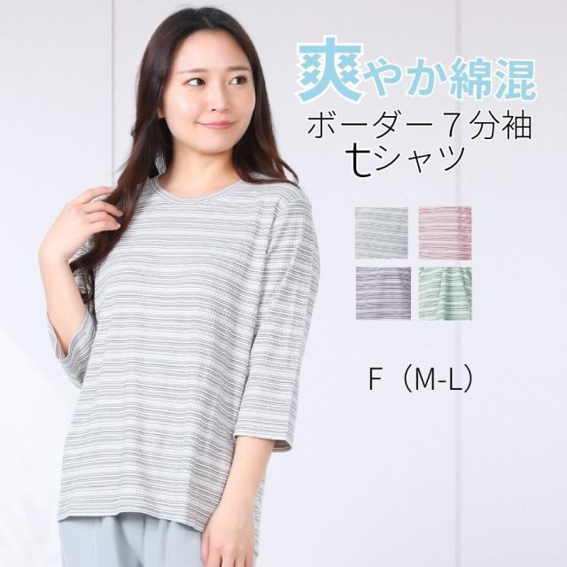 シニアファッション レディース トップス おばあちゃん 80代 70代 tシャツ 7分袖 ボーダー レディース uネック おしゃれ 柄 綿混 ゆったりサイズ 上着 お名前ラベル付き 柔らか 人気 敬老の日