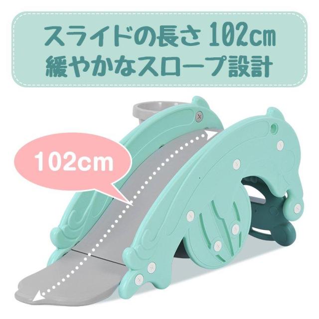 【3in1 お部屋に馴染むデザイン】室内用滑り台&木馬&バスケットゴール公園の滑り台であそぶがまだ心配な1歳−2歳ぐらいのお子様も自分専用の室内すべり台で心ゆくまで安心して遊ぶことができます。【スライドの長さ102cm緩やかなスロープ設計】お家の中で遊ぶことができるので、夏の強い日差しや梅雨のとき、冬の寒い日などを気にせずに、一年中いつでも元気に遊ぶことができます。【安定感抜群】安定感のあるボード、一定の角度で揺れるので、子供が安定に遊ぶことができます。【安心・安全なデザイン】子供の肌を守る 全体的に丸いフォルムで安全 パーツの細部に至るまで、丁寧に丸く加工し、より安全性を高めました。