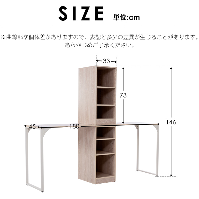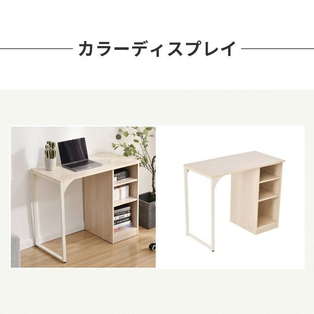 【商品サイズ】幅90×奥行45×高さ75cm(アジャスター範囲)【重量】18.2kg 天板静止耐荷重:約80KG ラック静止耐荷重:約15KG【素材】天板: MDF板(メラミン化粧板) フレーム:スチール(水や汚れ、摩擦に強い粉体塗装)【大収納力かつ隙間調節できるラック付き】ほしいものにすぐ手が届く多段ラックが付いています。シェルフの棚板は耐荷重15kgの頑丈設計で、本やDVD・CDなどをたっぷり収納できます。【ご注意・付属品】?単な組み立て品★工具と組立マニュアル付属