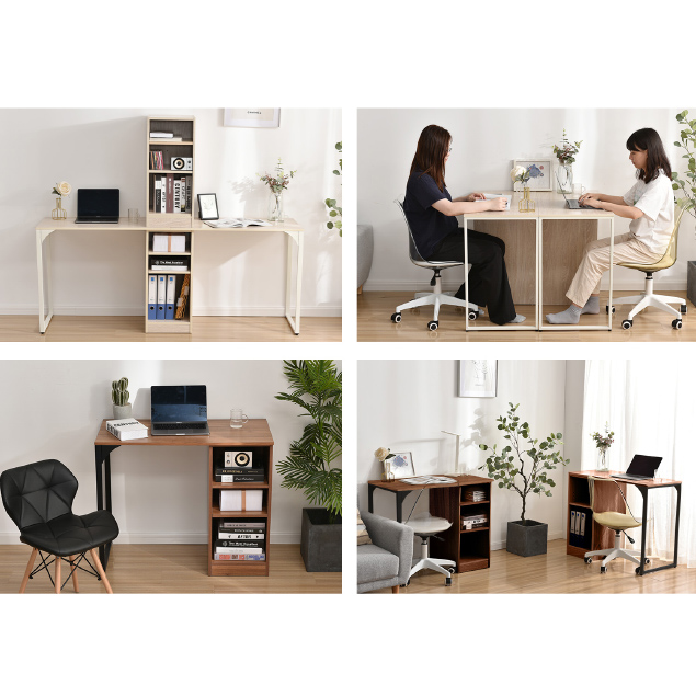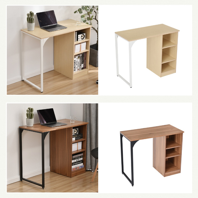 パソコンデスク 学習机 オフィスデスク 簡易デスク コンパクト ミシン台 3段シェルフ付 木製 アジャスター付き