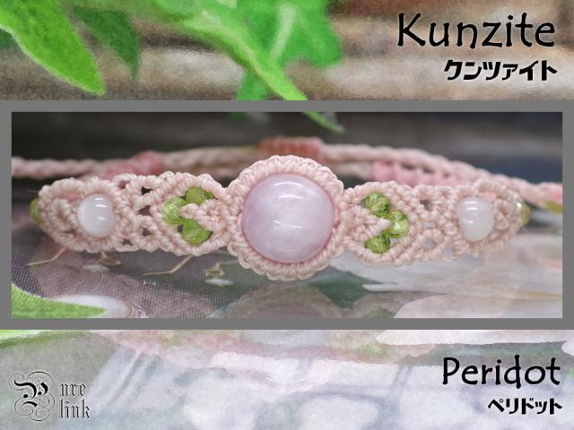 無限の愛の魔石『クンツァイト』と『ペリドット』マクラメ編ブレスレット