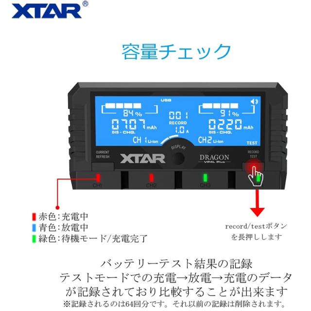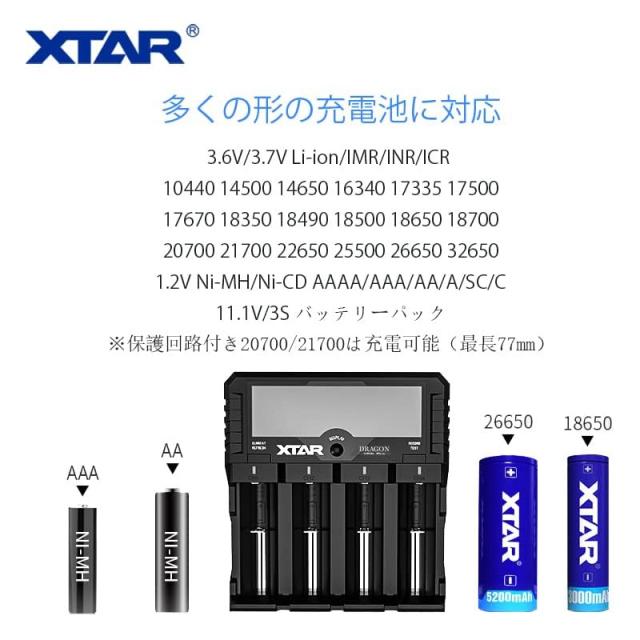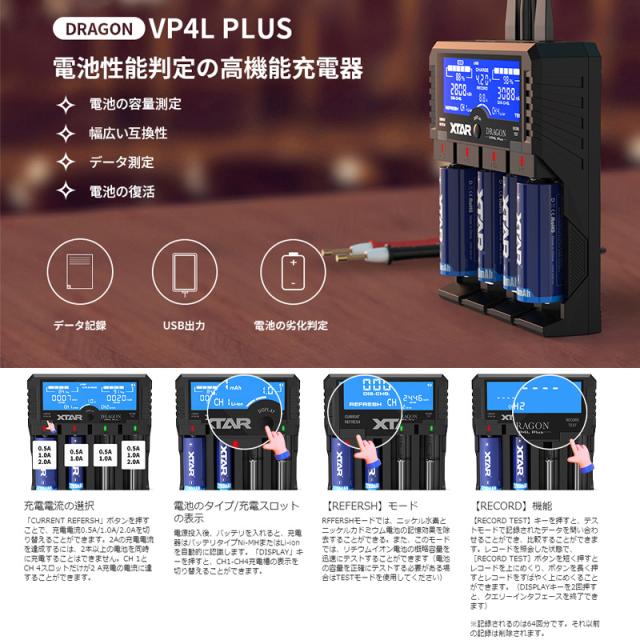 XTAR DRAGON VP4L Plus リチウム充電器 高機能電池充電器 3.6V/3.7Vリチウムイオン電池 10400〜32650 1.2V ニッケル水素電池/ニカド電池対応 AAAA/AAA/AA/A/SC/C 電池の劣化判定 バッテリー活性化機能