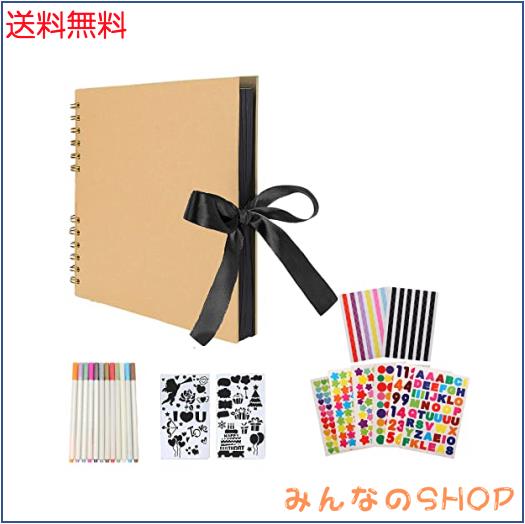 【商品仕様】アルバムサイズ:31*21.5*2.5CM 台紙サイズ:28*20CM(40枚/80ページ)梱包内容:アルバム×1冊、カラーペン×12本、コーナーステッカー×2枚、デコシール×6枚、テンプレート×2枚